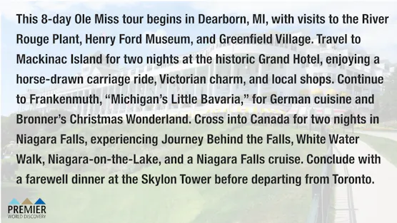 Mackinac Island, the Grand Hotel & Niagara Falls - August 9-16, 2026