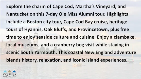 Cape Cod & the Islands- July 25-31, 2026